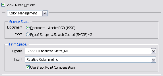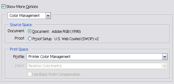 - Under Print Space, select Printer Color Management
